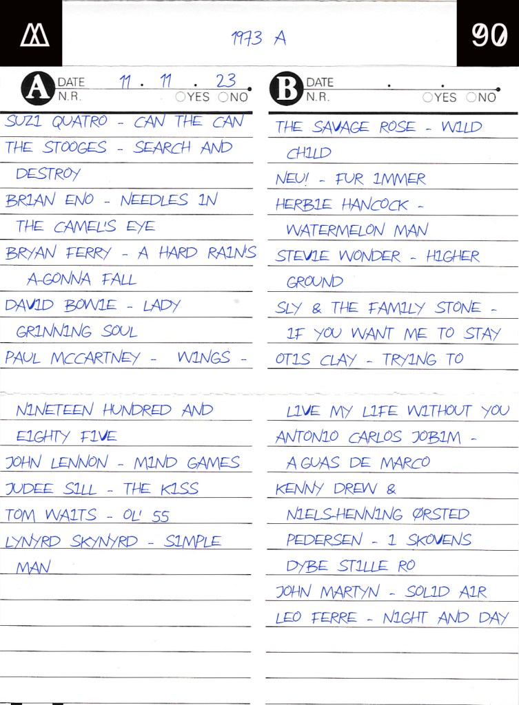 3 playlist (A, B and C-list) containing 3*20 tracks from the year 1973.