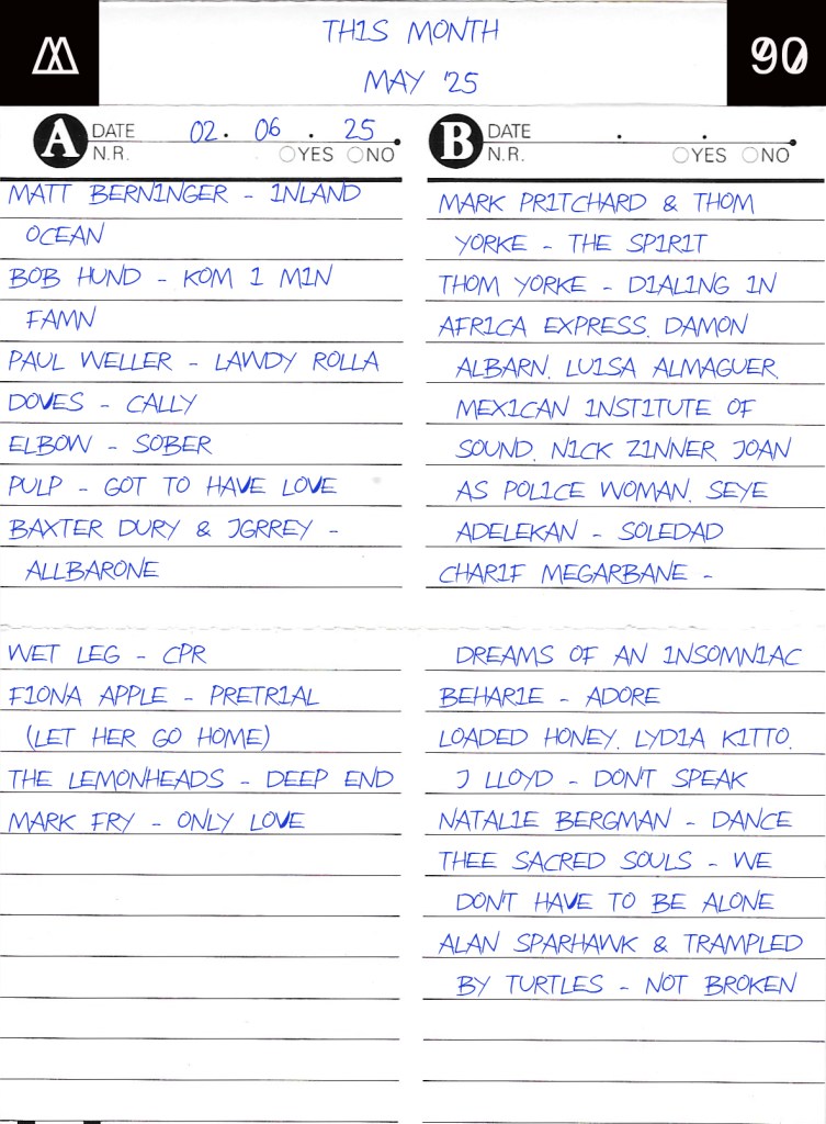 Discover new music with m90’s handpicked selection of the best tracks released in May 2025. As always standout sounds across genre.
