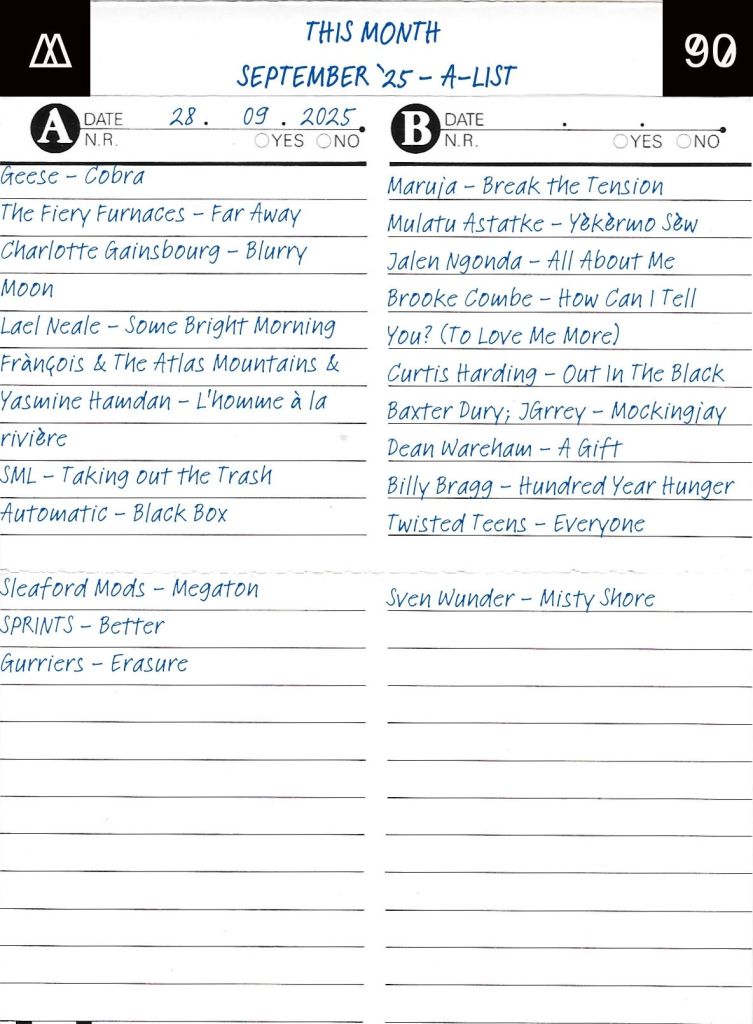 The month and the music just keeps rolling. Here’s the best tracks from September ’25.