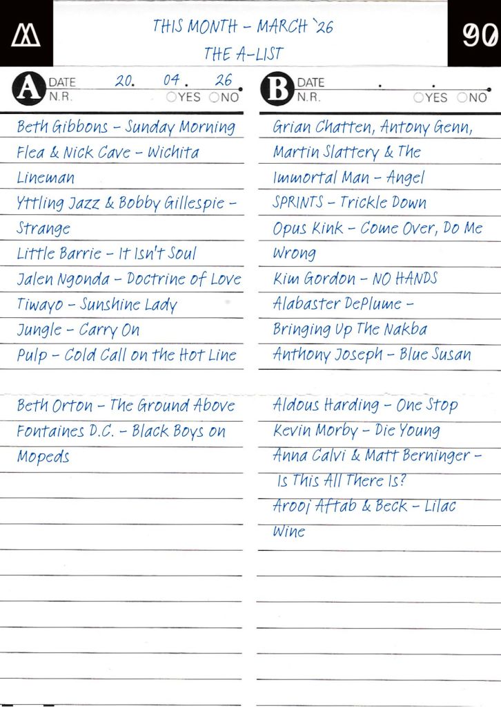 At the center sits the A-list: 20 standout tracks that capture the very best March had to offer. Beyond that, the month unfolds through the B-, C-, and “The Rest” lists, gathering a total of 135 international tracks.